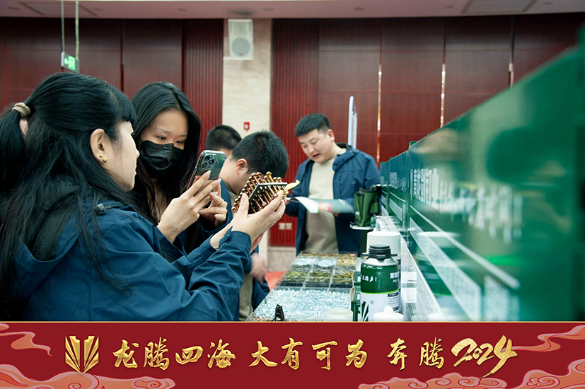 會議間隙,經銷商參觀公司產品展區,對公司推出的新產品頗感興趣,并咨詢、拍照。