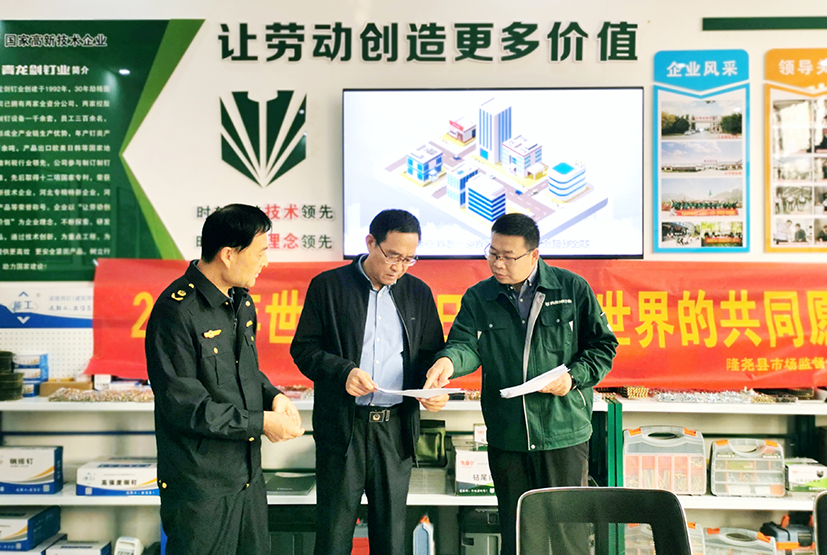 今年10月14日是第54屆世界標準日,主題為“美好世界的共同愿景”。為進一步推廣標準化理念,提高標準化意識,提升標準化總體水平,深入推進標準化戰略,10月12日,隆堯縣市場監督管理局副局長張彥國給青龍劍公司送來釘類產品國家標準。