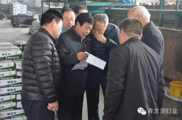 劉秘書長一行先后視察了青龍劍釘業拔絲制釘車間、熱處理車間、表面處理車間、污水處理車間、排釘車間、包裝車間和在建的多功能倉庫。