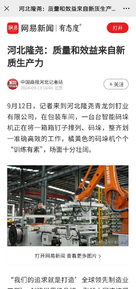 近日,青龍劍釘業憑借在科技創新及產品研發領域的卓越表現,吸引了眾多媒體的關注與報道。此次報道不僅是對公司過往成就的高度認可,更為未來的發展注入了強勁動力?!缎吓_新聞聯播》以“【青藍邢動 逐夢泉城】 馬群澤:“釘”住質量 “創”造輝煌”為題,詳細闡述了青龍劍公司總經理、首席質量官馬群澤對公司產品質量關的嚴···[詳情] 2025-02-23 16:18:42